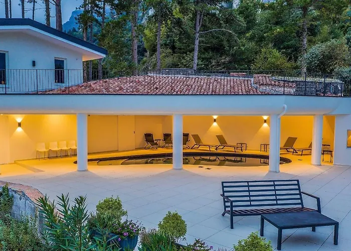 Located nearly a 10-minute ride from the Ciclopista del Garda cycling path, the 6-bedroom Villa Abetaia With Pool Limone sul Garda offers a terrace with views of the mountain. Offering an indoor swimming pool, the Limone sul Garda villa invites guests to visit the River Brasa Ridge trail, located 2.8 km away.